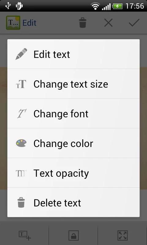 * संपादित; जोड़ें या वर्तमान वॉलपेपर के शीर्ष पर ग्रंथों को संपादित करें।