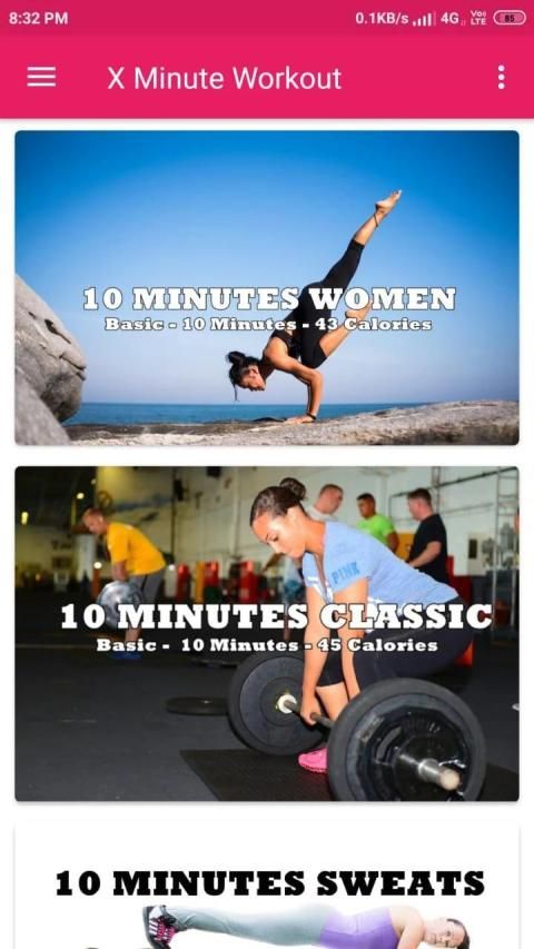 X minute workout means , 10 minutes workout in daily life, make it habit or daily routine, In this application you will get the following below: