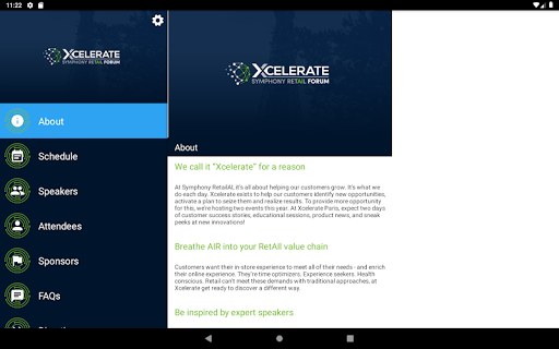 एक्ससेलरेट रिटेल फोरम, सिम्फनी रिटेलई के ग्राहक कार्यक्रम के लिए इवेंट ऐप।
