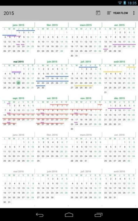 महीने एक भी ऊर्ध्वाधर स्क्रॉल सूची में एक साथ शामिल हो गए हैं, जहां एक प्रवाह दृश्य भी है। यह पुराने मानक कैलेंडर app करने के लिए इसी तरह की है।