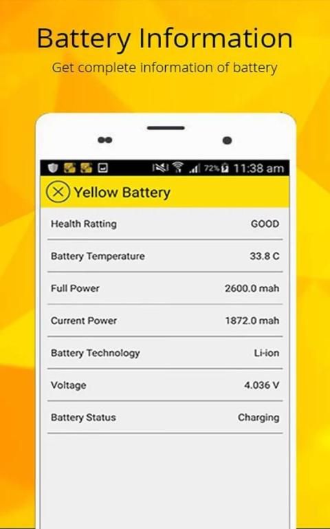 - पीला बैटरी शेष शक्ति के बारे में सब कुछ है, शेष के उपयोग, बैटरी स्वास्थ्य की स्थिति को इंगित करता है