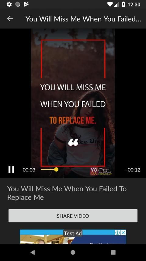 पूर्ण स्क्रीन वीडियो स्थिति ऐप उद्धरण।