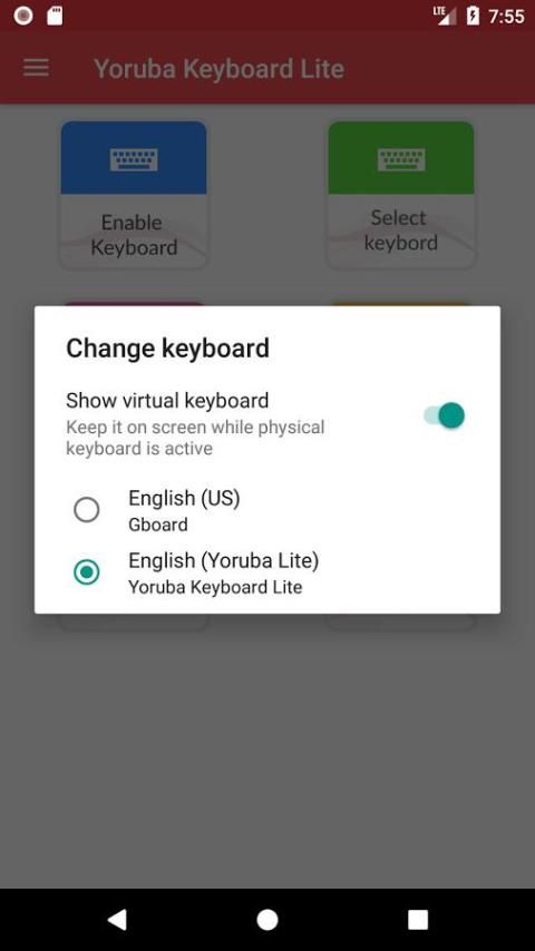 - आप योरूबा से योरूबा के लिए और योरूबा से योरूबा के लिए कीबोर्ड बदलें कर सकते हैं।