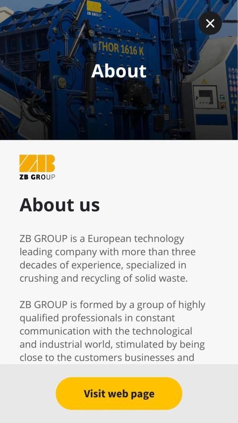 जेडबी ग्रुप तीन दशक से अधिक के अनुभव वाली एक यूरोपीय प्रौद्योगिकी अग्रणी कंपनी है, जो ठोस कचरे को कुचलने और पुनर्चक्रण में विशेष है।