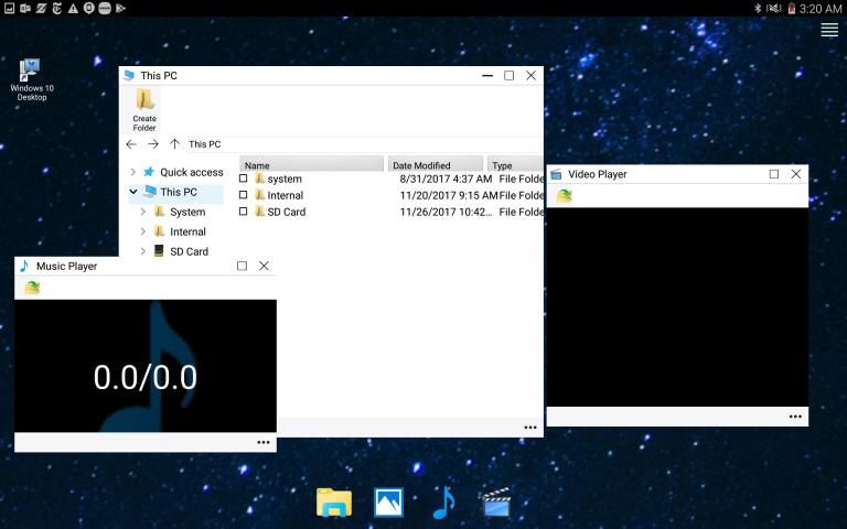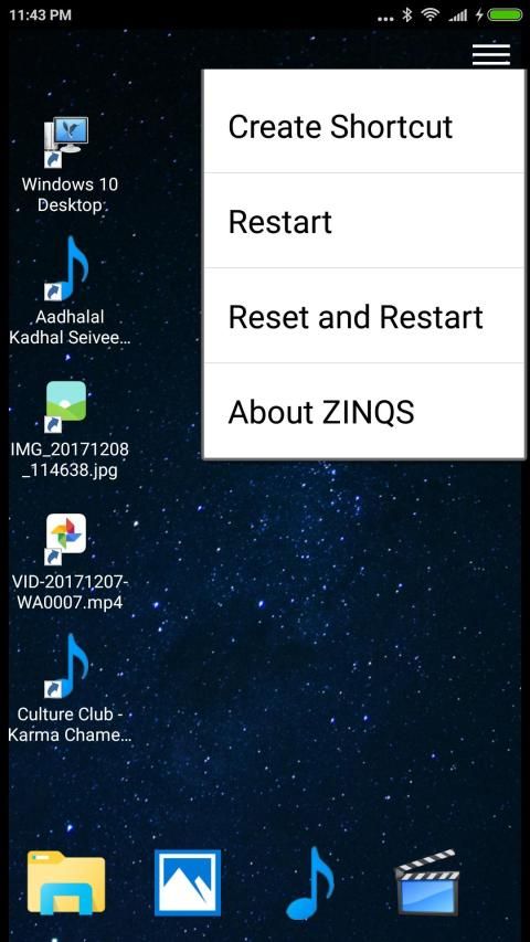 • Full Desktop to add shortcuts to music, video, and photos