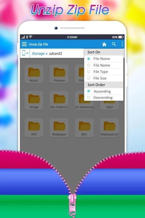 Unzip फ़ाइल एक्सट्रैक्टर निकालने और अपने Android डिवाइस पर शेयर ज़िप फ़ाइलें! आसान साझा करने और भंडारण के लिए फ़ाइलें सेक, और अपने डेटा और भंडारण सीमा खिंचाव।