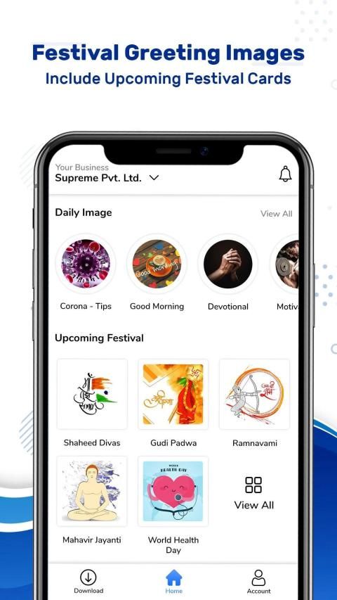 personalized greetings with your company logo, details and product/service information will helps you to promote your business along with festival wishes and greetings via WhatsApp, Facebook, Instagram, twitter and many other social media.