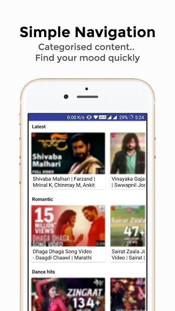 + 100 से अधिक मराठी वीडियो गाने तक पहुंच