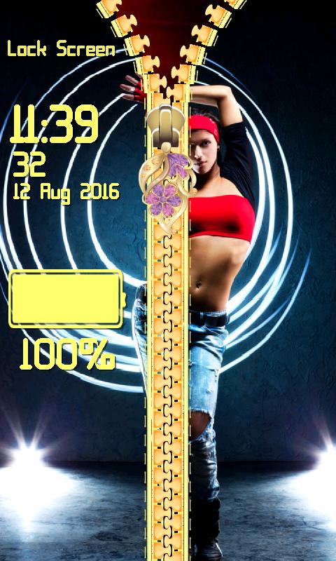 Do you like music? Have you always wanted to try out different dance styles? With the newest Zipper Lock Screen Dancer you will have help about deciding on which one to take up. Browse wonderful photos and choose if belly dancing or hip hop is your perfect choice. Check out how incredible and difficult moves a guy is performing and you will know what is waiting for you if you start doing this. Tap your zipper locker and belly dancer will appear. She is wearing a gorgeous gown made especially for performing. Imagine how would you feel to be up on the podium and to have all eyes on you. By downloading for free the latest Zipper Lock Screen Dancer app on your smartphone or tablet you will admire the stunning look of a girl doing samba.