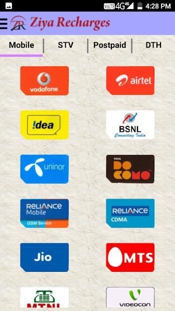 ज़िया रिचार्ज्स एयरसेल, एयरटेल, वोडाफोन, टाटा इंडिकॉम मोबाइल, रिलायंस मोबाइल, टाटा डोकोमो, बीएसएनएल, आइडिया, वीडियोकॉन मोबाइल और वर्जिन मोबाइल और टाटा स्काई, डिश टीवी, रिलायंस डिजिटल टीवी, सन डायरेक्ट के लिए डीटीएच सेवाओं के लिए सरल और त्वरित रिचार्ज प्रदान करता है। एयरटेल डिजिटल टीवी, वीडियोकॉन डी 2 एच।