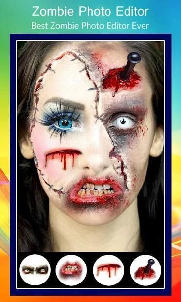 यह आपके चेहरे को ज़ोंबी में बदल देता है। अपने दोस्तों या यहां तक कि खुद को डराओ। देखें, आप कैसे देखेंगे जब आप ज़ोंबी होंगे। इस अद्भुत फोटो संपादन ऐप के साथ, आप हॉलीवुड पेशेवरों की तरह ज़ोंबी के लिए शानदार विशेष प्रभावों का उपयोग कर सकते हैं।