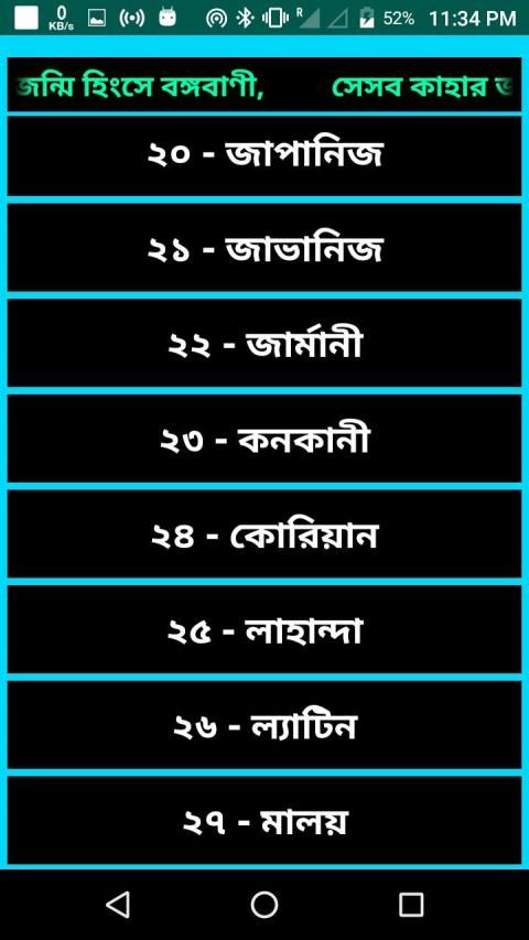 যেসকল ভাষা অ্যাপটিতে অন্তর্ভুক্ত হয়েছে................
