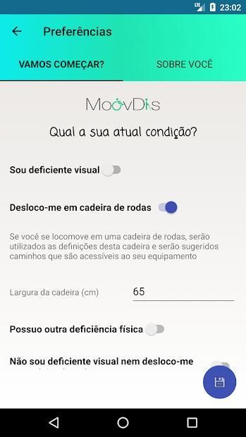 O moovdis é um aplicativo colaborativo destinado ao mapeamento de caminhos e de lugares acessíveis para pessoas com dificuldade de locomoção ou deficientes visuais.