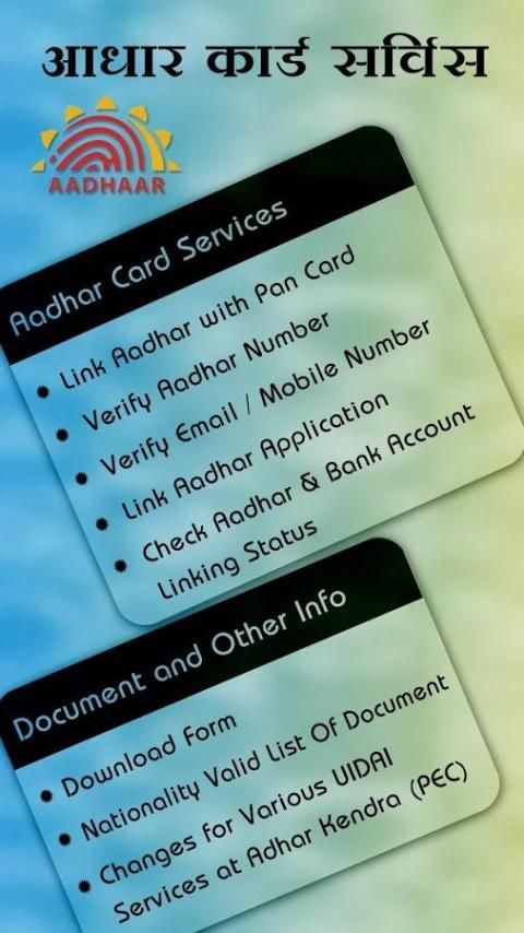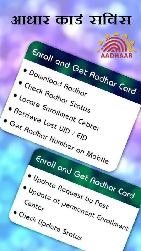 आधार कार्ड एप्लिकेशन से संबंधित कार्रवाई करने के लिए उपयोगकर्ता की अनुमति देता है। नाम, के रूप में आधार कार्ड आपके स्मार्ट फोन का उपयोग कर के साथ जुड़ा हुआ फोटोग्राफ के साथ जन्म, लिंग और पता की तिथि।