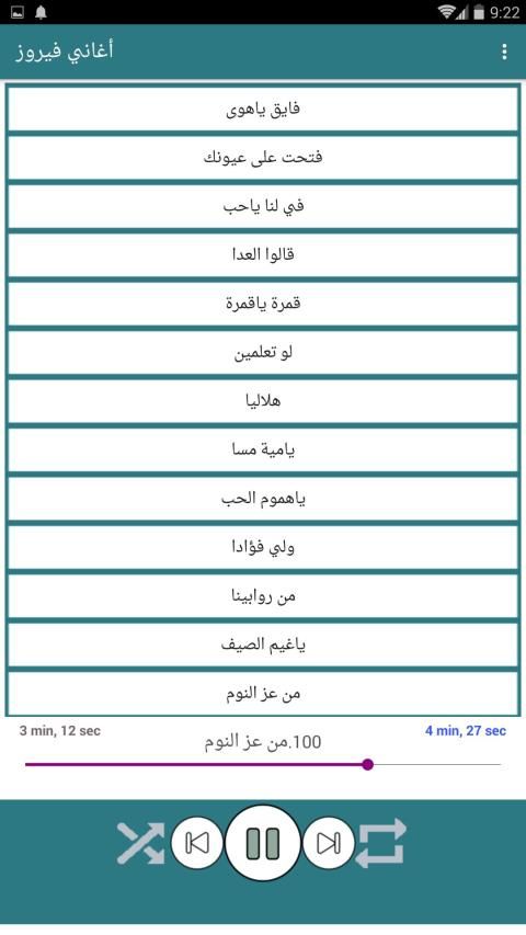 يضم التطبيق 100 اغاني فيروز بدون انترنت ستجدون 100 اغنية تعمل بدون انترنت 2019-2020 بشكل جميل ومميز