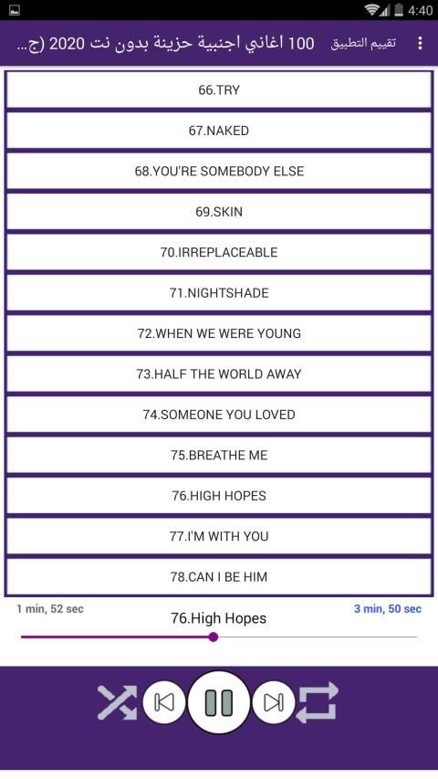 يحتوي هذا التطبيق على 100 من اروع الاغاني الاجنبية الحزينة حتى اخر تحديث 2020 و بدون نت!