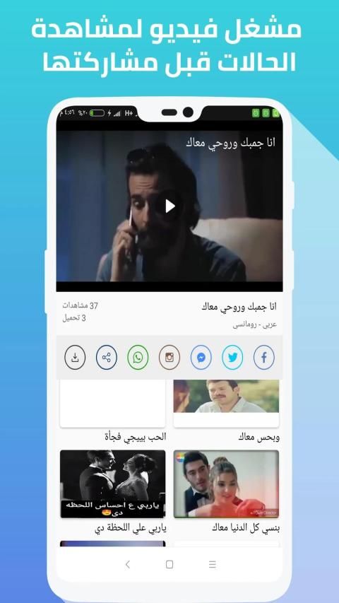 الان يمكنك الأستمتاع بأحدث الحالات الفيديو تطبيق "حالات واتس اب فيديو" يمكنك من خلاله تحميل حالات اصدقائك على الوتسات, مشاهدة احدث الحالات, تحميل الحالات ومقاطع الاغاني, حالات واتس اب فيديوهات.