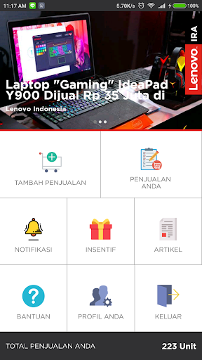 लेनोवो इंडोनेशिया रिटेल ऑटोमेशन (लेनोवो आईआरए) स्टोर एक निगरानी अनुप्रयोग है जिसका उद्देश्य आपके लिए इसे आसान बनाना है, लेनोवो उत्पादों की बिक्री की रिपोर्ट करने में मालिकों को खरीदारी करना। आसानी से अपनी बिक्री जोड़ें।आसानी से और जल्दी से रिपोर्ट देखो, खोजें और भेजें।लाखों रुपया तक प्रोत्साहन प्राप्त करें प्रत्येक लेनोवो उत्पादों की बिक्री जोड़ें।और इस एप्लिकेशन में, आप लेनोवो उत्पादों की समाचार, घोषणाएं और कैटलॉग भी देख सकते हैं।
