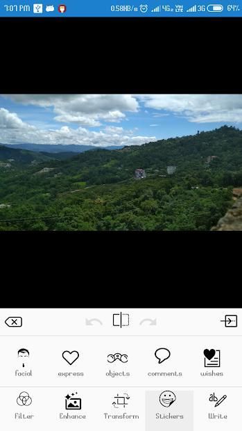download the best editor ,with all kind of filter ,and with all kind of new feature to edit your photo and make it look beautiful like a professional....there are lots of feature like enhance mode,sticker ,write etc