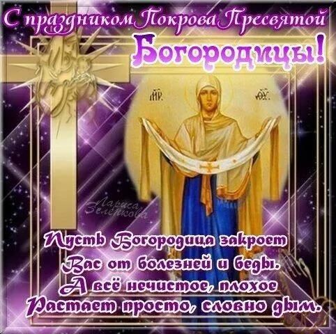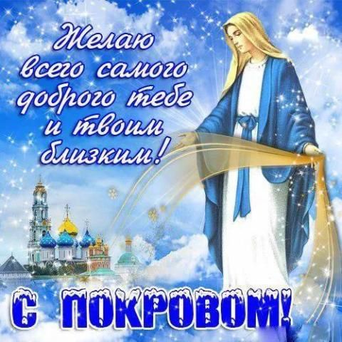 В день Покрова Пресвятой Богородицы пожелать от чистого сердца хочу блага жизни и радости души, неугасаемой веры и доброй надежды, искренней любви и верного счастья, крепкого здравия и любимых близких рядом.