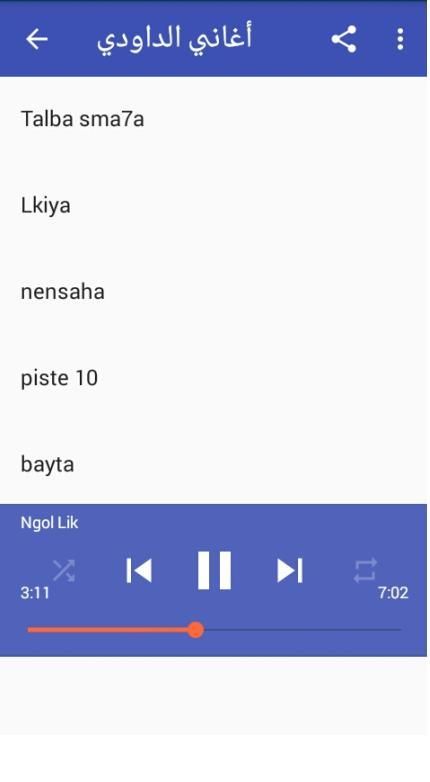 يتضمن هدا التطبيق من العديد من الاغاني أرائعة للفنان الداودي 2019 وكل جديد الفنان الداودي ينزل في التطبيق في نفس الوقت وكدالك حجم التطبيق خفيف الحجم و نطبق عليه التحديت كل شهر تحديت جديد نشكركم علي تحميلكم للتطبيق :