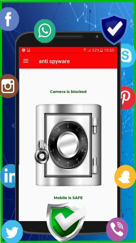 - विरोधी स्पायवेयर अपने मोबाइल कैमरे से यह सुनिश्चित होगा और (कोई जड़ दूसरों से स्पाइवेयर, वायरस पृष्ठभूमि, स्पाईवेयर और मैलवेयर अनुप्रयोग, मैलवेयर, निगरानी, वायरस, पृष्ठभूमि और अनैतिक कैमरा का प्रयोग करें, कैमरा का दुरूपयोग जैसे कुछ अन्य आवेदन के खिलाफ पूर्ण कैमरा बीमा देना आवश्यक)।