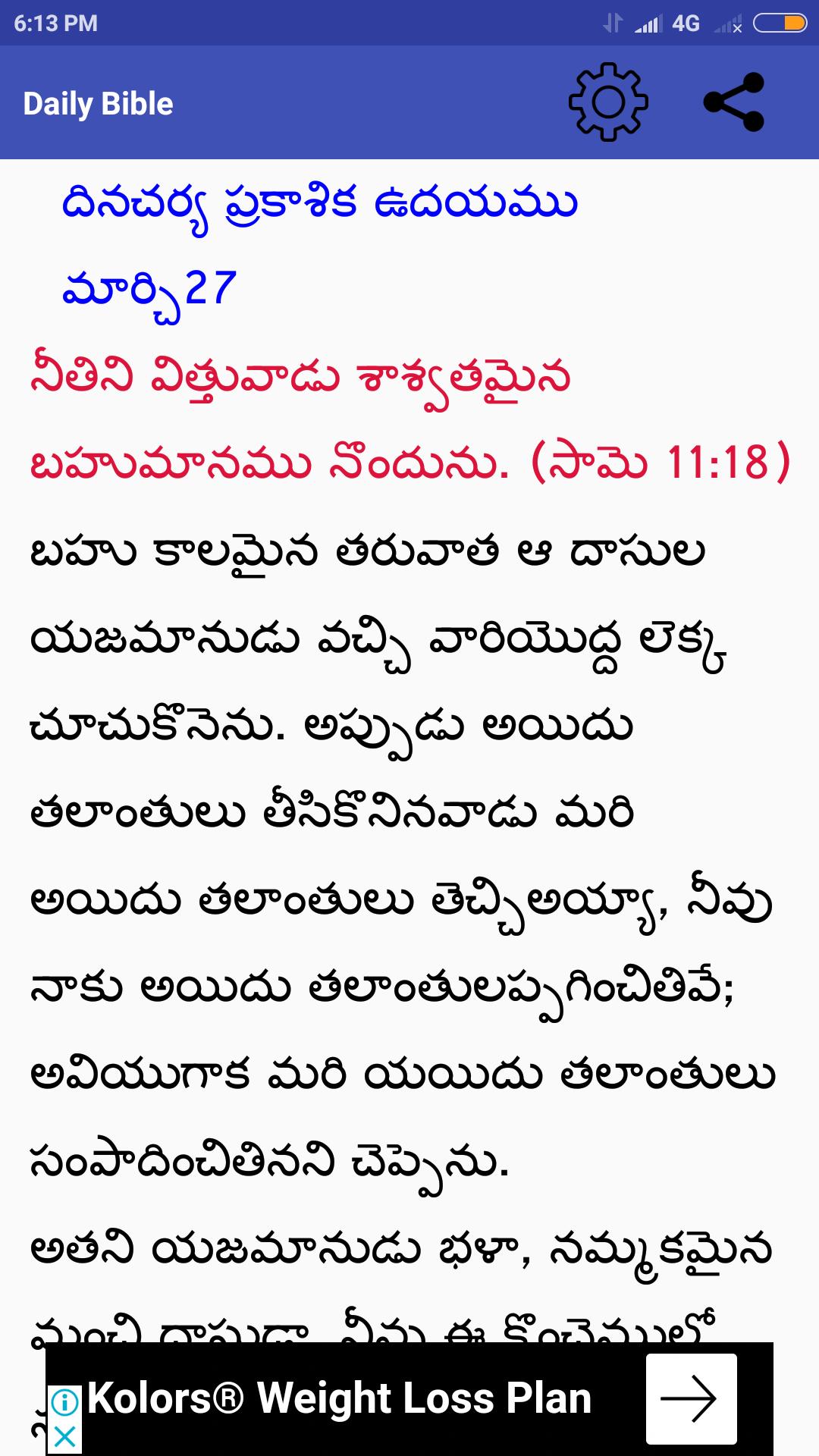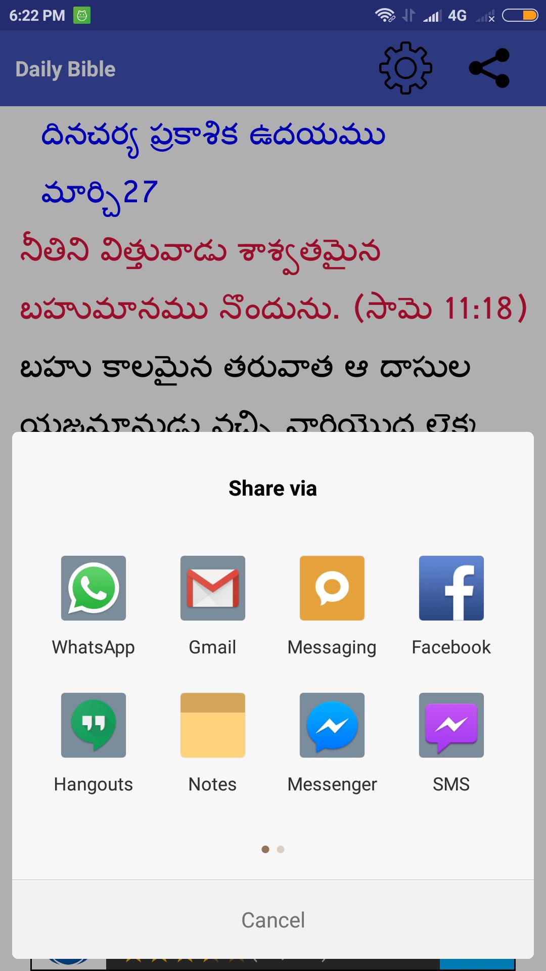 •Needs no internet connection once you Download this Daily Telugu Bible App