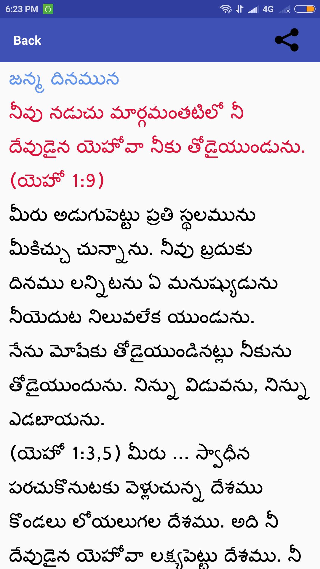 •App displays Telugu Bible text in Clear Telugu Font (తెలుగు)
