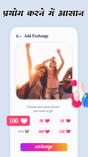 एक्सचेंज लाइक द्वारा दिलों को इकट्ठा करें।