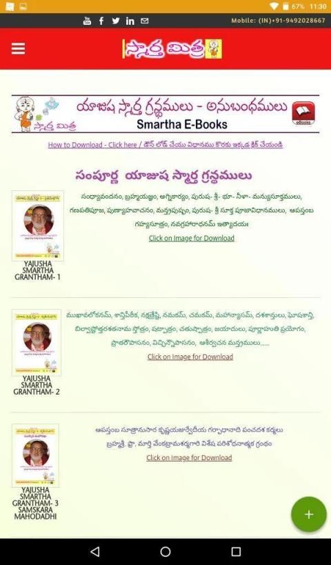 स्मार्टहा छात्रों के लिए तेलुगु में स्मार्टहा ई_बुक शामिल है। (आपस्तम्ब पंचदसा संस्कार, महान्यासा, रुद्रम, शतपथ, चतुष्पत्र, जयादि होमा, पंच सूक्त, सप्त पाव यज्ञ, देवता कल्प समाधि, आबदिका प्रयाग आदि ……………।