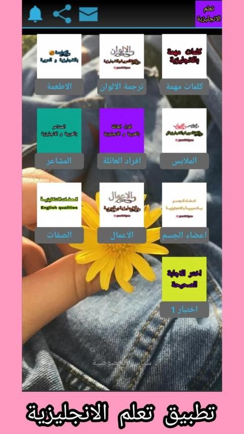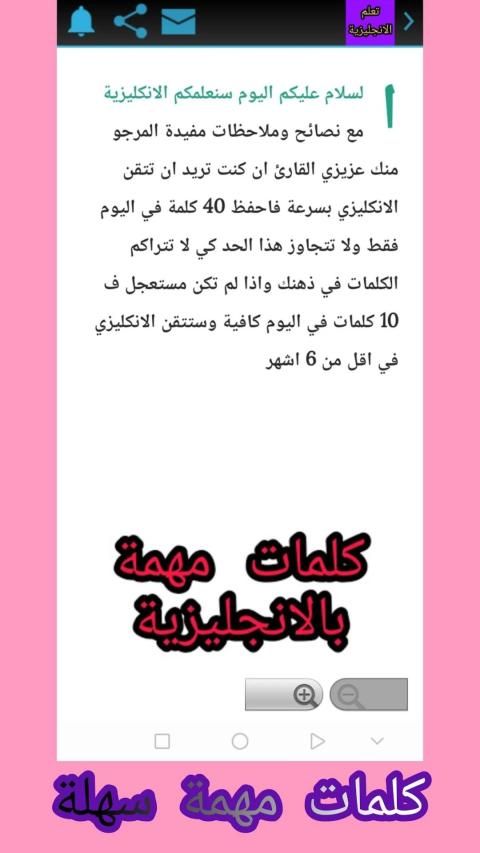 تعلم اللغة الانجليزية مع تصنيف الكلمات واختبارات سهلة وصعبة و متوسطة و كلام محفز ومحمس يوجد ما يقارب 1000 كلمة و بعض الجمل وقريبا سنضيف ملاحظات وما شابه ذالك مع امكانية نسخ النص ومشاركته على واتساب و فيس بوك و فايبر وتويتر و غوغل و كوكو و تيلغرام و تطبيقات التواصل الاخرى
