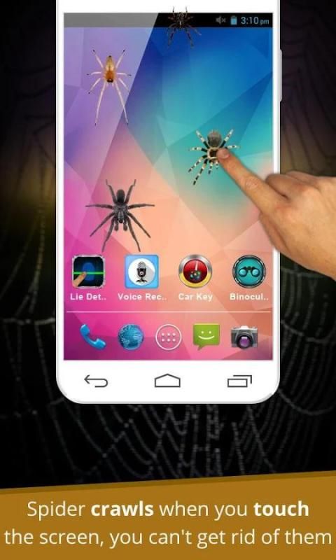 स्क्रीन पर कहीं भी स्पर्श और मकड़ियों फोन पर रेंगने शुरू करते हैं। वे चारों ओर ले जाने और मकड़ी से नफरत है, जो लोगों को एलर्जी के कारण। मकड़ियों नफरत है, जो लोगों के लिए महान शरारत app।