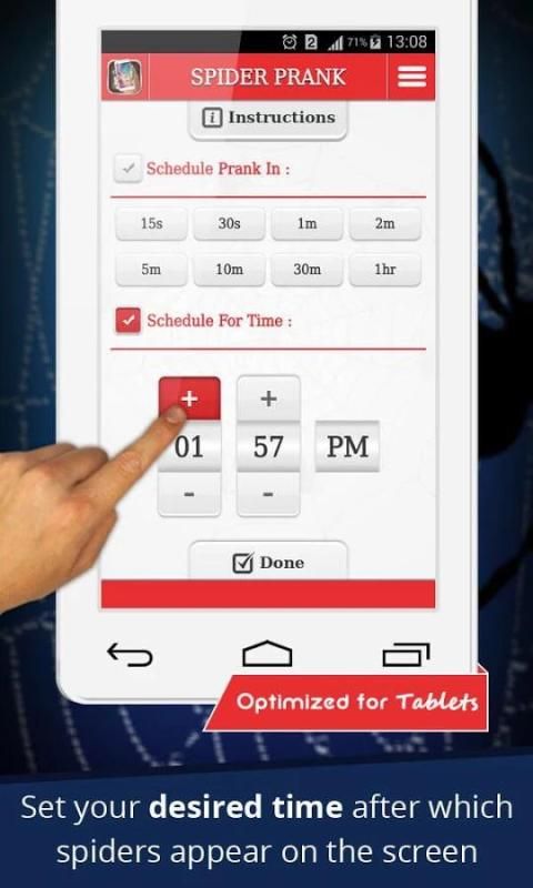 अपने फोन पर टाइमर, हाथ सेट, और एक यथार्थवादी दिखने मकड़ी देखने में क्रॉल जब अपने मित्रों कूद देखो! अपने दोस्त मकड़ी जिंदा आने के लिए स्क्रीन छू लेती है सुनिश्चित करें !!