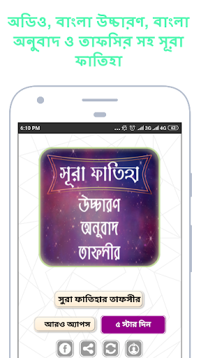 আশাকরি, সূরা ফাতিহা অডিও, সূরা ফাতিহা বাংলা উচ্চারণ, সূরা ফাতিহা বাংলা অনুবাদ ও সুরা ফাতিহার তাফসির সহ এই অ্যাপটি আপনাদের ভালো লাগবে।