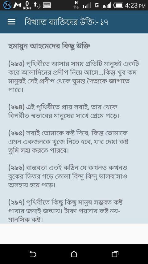 Multicode Lab release an awesome bangla quotes collection available app. Every bengali people like bangla quotes of humayun ahmed and muhammad ali also like kazi nazrul islam and rabindranath quotes.