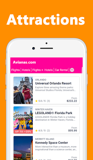- टिकट और पर्यटन, यदि आप वॉल्ट डिज़्नी वर्ल्ड रिज़ॉर्ट टिकट, या एक परिभ्रमण अनुभव की तलाश में हैं, तो आप पाएंगे यह Avianas.com ऐप पर है।