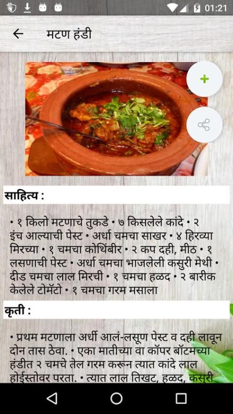 मराठी रेसिपी: अनुप्रयोग ऑफ़लाइन शाकाहारी व्यंजनों और गैर शाकाहारी व्यंजनों के बड़े संग्रह है