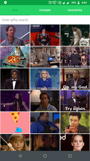हमने gifs की नई सुविधा भी जोड़ा। अब आप अपने प्रियजनों या दोस्तों को या किसी एक जीआईएफ को भेज सकते हैं। हमने आपके लिए जिफी एपीआई का इस्तेमाल किया। एक हम giphy से gifs का बड़ा संग्रह है, आप केवल एक क्लिक के साथ बहुत आसानी से साझा कर सकते हैं। किसी भी प्रकार के जीआईएफ की खोज के लिए विकल्प भी है।