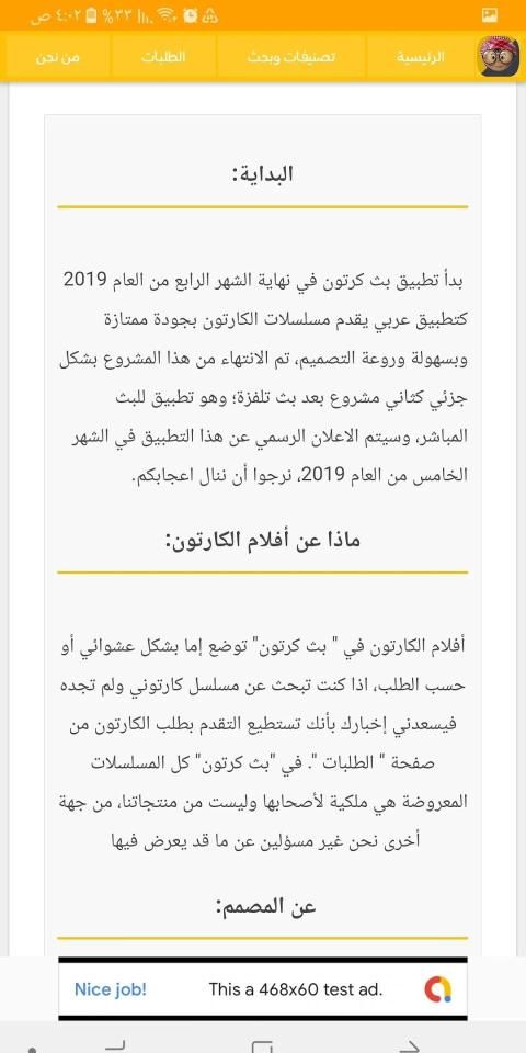 2019 के चौथे महीने के अंत में एक अरबी एप्लिकेशन के रूप में एक कार्टून प्रसारण शुरू किया गया था, जो कार्टून की श्रृंखला को उत्कृष्ट गुणवत्ता और सहजता और भव्यता के साथ प्रस्तुत करता है। यह परियोजना टेलीविजन के प्रसारण के बाद आंशिक रूप से दूसरी परियोजना के रूप में पूरी हुई थी। वर्ष 2019, हमें आपकी प्रशंसा जीतने की उम्मीद है।