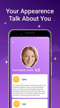 Attractiveness test app, looks into geometric proportions of facial features such as the eyes, nose, lips, etc. and the distance between those. When the face analysis is finished, you are able to see which features of your face determine your beauty score.