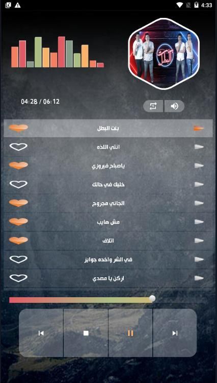 नेट के बिना एक आवेदन में हमो बेका, हसन शकौश, अली क़द्दौरा, नूर अल-तुत, समीर अल-मदनी, इस्साम सासा, अब्दो नियंत्रण और फिगो अल-दखलवी के सभी गाने।