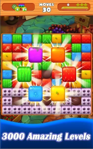 Smash all the same fruit colored cubes by using various boosters such as brick-busting blasts, rechargeable power-ups and many more!
