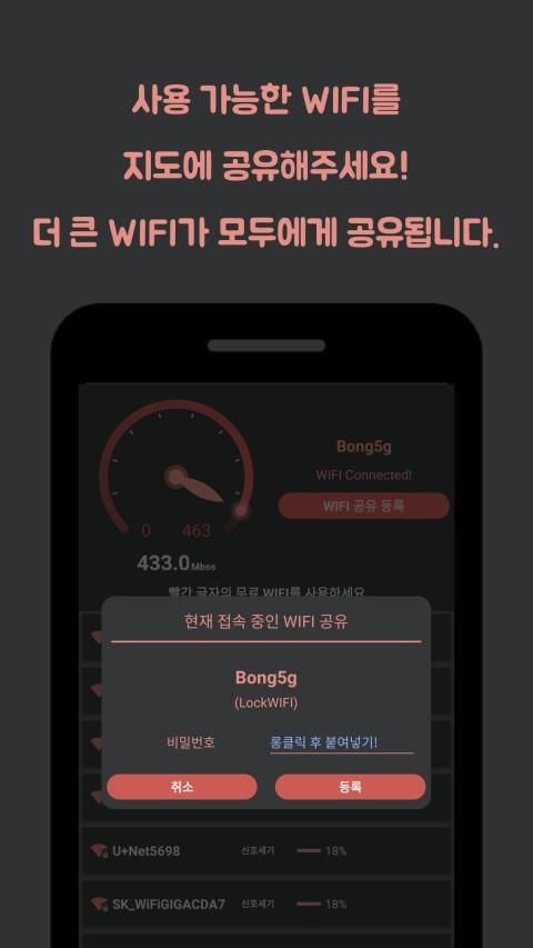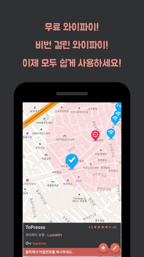 주변의 모든 무료 와이파이는 물론 유료 와이파이도 서로 공유하여 쓰는 새로운 개념의 모두의 와이파이