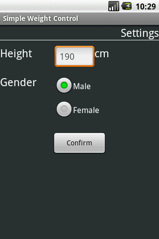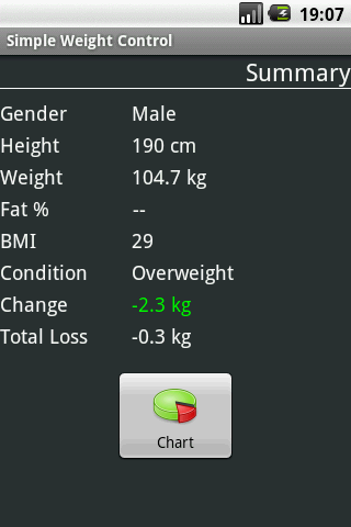 Simple tool and easy to user for weight control. Control your weight changes, tracking your BMI and fat percentage.