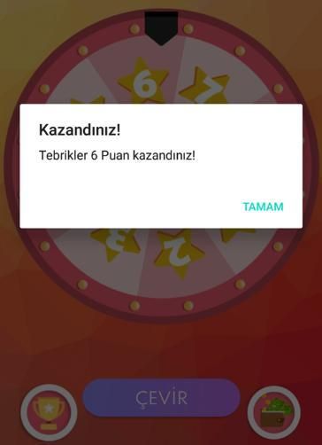 çarkı çevirerek puanları toplayın istenilen puana gelince puan karşılığı gelen internet veya uc miktarını kazanın bu kadar basit sabreden kazanır şimdiden bol şanslar..