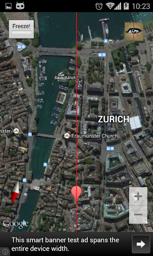 Line of Sight allows you to find out what you are looking at. Point the red line into the direction you are looking at and you can see on the map what you are looking at.