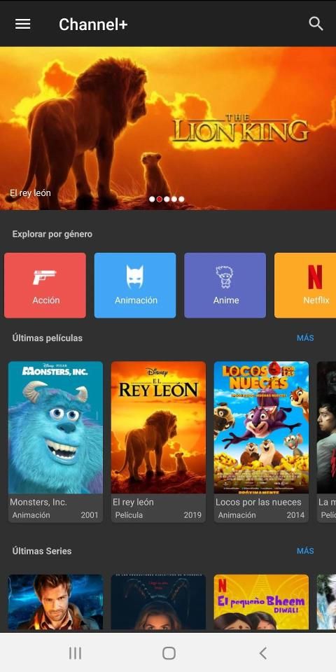 Esta app contiene un catalogo, con clasicos y ultimos estrenos organizados en categorias