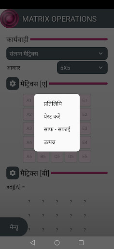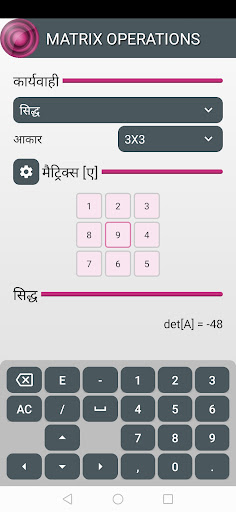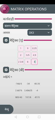 Matrix Operations एक ऐसा एप्लिकेशन है जो मैट्रिसेस के साथ गणितीय कार्य करता है जैसे: