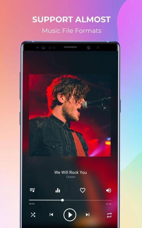 MP3 मुफ्त एमपी 3 प्लेयर प्रो लगभग संगीत फ़ाइल स्वरूपों (एमपी 3, MIDI, WAV, APE…) का समर्थन करता है
