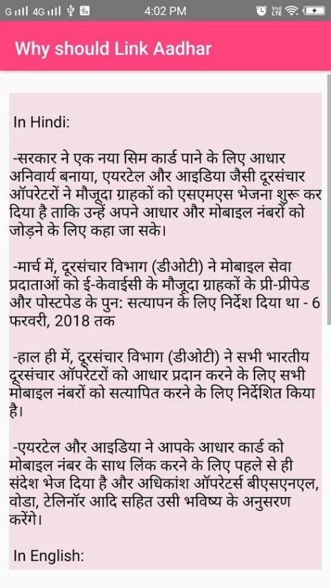 हाल ही में, दूरसंचार विभाग (डॉट) सभी भारतीय दूरसंचार ऑपरेटरों निर्देश दिया है अधर करने के लिए यह लिंक करके सभी मोबाइल नंबर का सत्यापन करना होगा। फिलहाल एप्लिकेशन कैसे सिम प्रक्रिया को अधर लिंक करने के लिए एयरटेल, एयरसेल, आइडिया, वोडाफोन, Uninor, टाटा डोकोमो, बीएसएनएल और रिलायंस जैसे टेलीकॉम ऑपरेटरों का समर्थन करता है। इस एप्लिकेशन के पास भारतीय प्रीपेड दूरसंचार उन जैसे विशिष्ट कार्यों के लिए संख्या को खोजने के लिए मदद करता है
